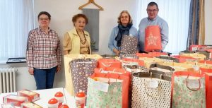 Tollitäten unterstützen die Ehrenamtlichen bei der Verteilung an Senioren Auch in diesem Jahr möchte die Nachbarschaftshilfe Hilden e.V. mit ihrer Weihnachtstüten-Aktion älteren oder allein lebenden Menschen zum bevorstehenden Weihnachtsfest eine Freude machen. „Es sind Menschen, die in den vergangenen Monaten von unseren Helferinnen und Helfern betreut wurden oder weiter betreut werden“, erklär die Vorsitzende Ingrid Benecke (Foto oben 2.v.l., neben
