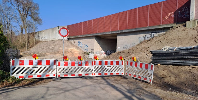 Wer sich in diesen sonnigen Tagen wieder öfter auf das Fahrrad schwingt und ein paar Runden durchs Grüne rund um Hilden und Erkrath drehen will, wird an einer besonderen Stelle derzeit ausgebremst – und das noch für längere Zeit. Seit Anfang Februar ist die Unterführung des Weges Birken / An der Brandshütte unter der A3 – nördlich des Autobahnkreuzes Hilden – abgeriegelt. Der Grund: Die Rheinland der Autobahn GmbH ersetzt vier der sieben Teilbauwerke der Autobahnbrücke.