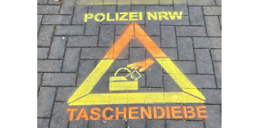 Hierzu wurden am Montagvormittag, 6. Oktober 2025, in Hilden Piktogramme in der Fußgängerzone aufgesprüht, die vor Taschendieben warnen sollen. Zudem wurden Bürgerinnen und Bürger mittels Flyer und im Rahmen von zahlreichen Gesprächen vor den unterschiedlichen Maschen der zum Teil professionell agierenden Diebinnen und Dieben gewarnt.