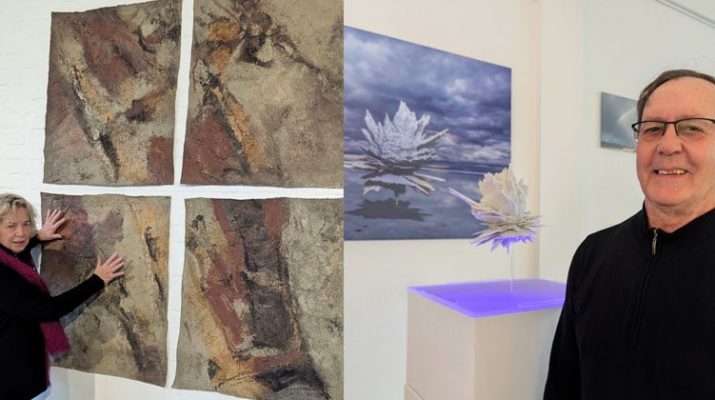 Kunstraum im Gewerbepark-Süd: Ausstellung „Zwischen Erde und Unendlichkeit: Kunst aus Erde, Steinen und Meteoritenspänen“ von Ulrike Arnold & Victor van Keuren Mit Erde malen,