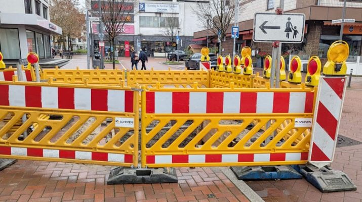 Die Schulstraße ist im Bereich der Fußgängerzone für PKW oder LKW nicht befahrbar. Nicht betroffen sind aber Radfahrer und Fußgänger, auch die Zufahrt zum Parkhaus des Itter-Karrees ist uneingeschränkt möglich.