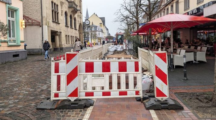 Wieder wird auf der Mittelstraße gebuddelt und gewerkelt. Direkt vor dem Bürgerhaus entsteht derzeit eine Schneise mit rotem Klinkerpflaster. Was hat es damit auf sich?