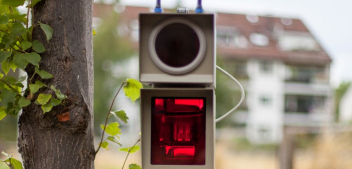 Das semistationäre Geschwindigkeitsmessgerät des Kreises Mettmann steht in der 24. Kalenderwoche in Lindenstraße in Wülfrath.