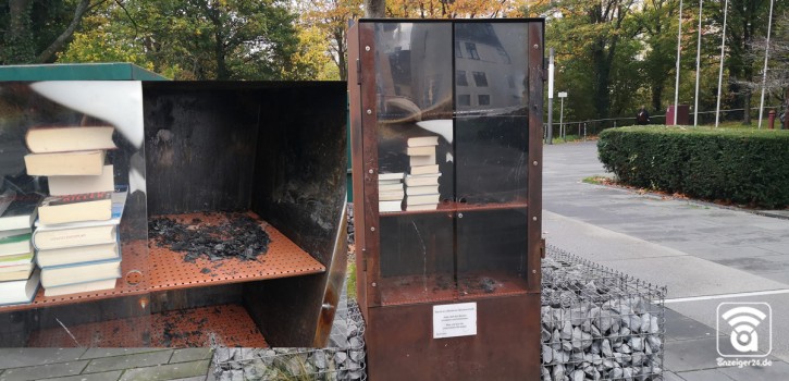 Bücherschrank angezündet