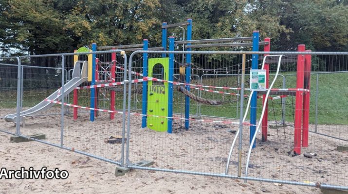 Fertigstellung bis Mitte Mai geplant – Nach dem Brand müssen viele Podeste und Seilanbeuteil ersetzt werden Der Spielplatz am Eichelkamp bekommt Zuwachs: Das Tiefbau-