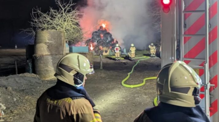Strohballen in Flammen: Ein „kräftezehrender Einsatz“ für die Feuerwehr