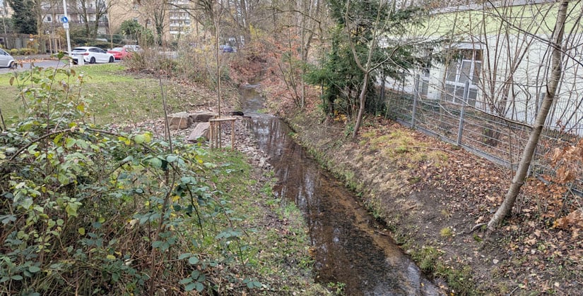 Die Stadt Hilden baut deshalb eine Regenwasserbehandlungsanlage, die Schmutzstoffe herausfiltert und den Zufluss in den Bach reguliert.