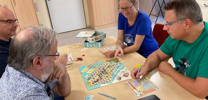 Bereits seit Anfang Juni findet regelmäßig ein Spieleabend in der Vereinsstätte Gerresheimer Straße 20b (hinter dem Alten Helmholtz) statt. Zur Premiere kamen 16 Besucherinnen und Besucher (Foto oben), freut sich der Vorsitzende Michael Krambrock.