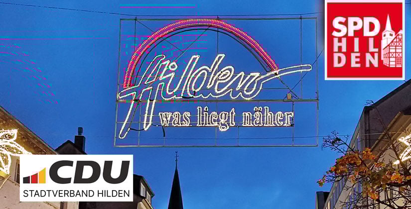 Die SPD-Fraktion würde gerne den Spruch „Hilden – was liegt näher“ beibehalten. Der alte Leuchtbanner sollte dann lediglich mit moderner, energiesparender LED-Technik ausgestattet werden. Der Stadtmarketing e.V. (nicht zu verwechseln mit dem neuen Citymanagement im Rathaus) hatte sich sogar bereit erklärt, die Kosten für den Re-Fresh zu übernehmen. Die Strom- und Unterhaltungskosten sollte aber die Stadt Hilden tragen – so die Idee.