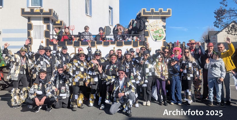 Der jecke Treck startet um 14.11 Uhr am Lindenplatz. Die Wagen und Fußtruppen ziehen von dort aus über Richrather-, Süd-, Kolping- und Kirchhoffstraße in die Mittelstraße.