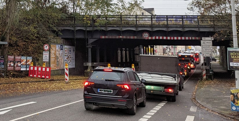 Sie war in den letzten Tagen eine der größten Staufallen im Hildener Verkehrswirrwarr. Doch jetzt soll zumindest dieses Hindernis bald wieder verschwinden: „Die Baustellenampel an der Eisenbahnbrücke über die Düsseldorfer/Benrather Straße wird am Donnerstagmittag, 13. November 2025, abgebaut“, teilt die Stadt Hilden aktuell mit. „Damit kann die Fahrbahn voraussichtlich ab dem Feierabendverkehr wieder ohne Einschränkungen befahren werden.“