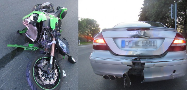 Motorradfahrer fährt einem Mercedes ins Heck – zu schnell gewesen?