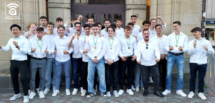 Ein erhebendes Gefühl muss dies für alle Spieler gewesen sein. Gekrönt wurde dieser hochemotionale Freudentaumel mit einem Stadtempfang am Dienstagabend mit Bürgermeister Claus Pommer im Bürgerhaus. Hier durften sich das Trainerteam und alle Spieler in das Goldene Buch der Stadt eintragen – eine solche Ehre in jungen Jahren erfährt man auch nicht gerade sehr oft.