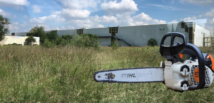 Grund für die „Rodung“ war folgender: Das Gelände ist verkauft worden, und der neue Eigentümer wollte den Wildwuchs des seit einigen Jahren verwahrlosten Grundstücks zurückschneiden. Bei dieser Aktion hat er wohl nicht gegen die Hildener Baumschutzsatzung verstoßen. Aber ihm ist „durchgegangen“, dass in der Baugenehmigung dem damaligen Eigentümer (Vonnahme, Anm. der Redaktion) die Auflage enthalten war, einige Flächen mit Bäumen und Sträuchern zu bepflanzen.