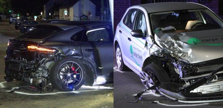 Gegen 22:30 Uhr befuhr ein 59-jähriger Fahrer eines Porsche Cayenne GTS die Elberfelder Straße in Richtung Haan. In Höhe der Hausnummer 45 hatte der Hildener die Absicht, nach links in eine Grundstückseinfahrt abzubiegen. Hierbei missachtete er den vorfahrtberechtigten VW Polo des 24-jährigen Hildeners, welcher ihm auf der Elberfelder Straße entgegenkam. Der Porsche Cayenne kollidierte frontal mit dem VW Polo. Durch die Wucht des Aufpralls wurde der Porsche mit dem Heck gegen einen Ampelmast geschleudert.