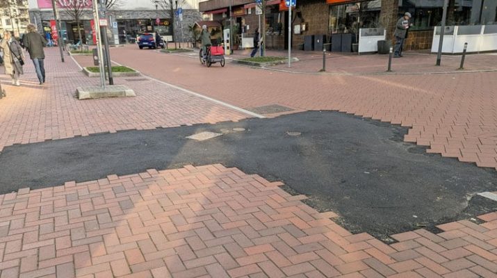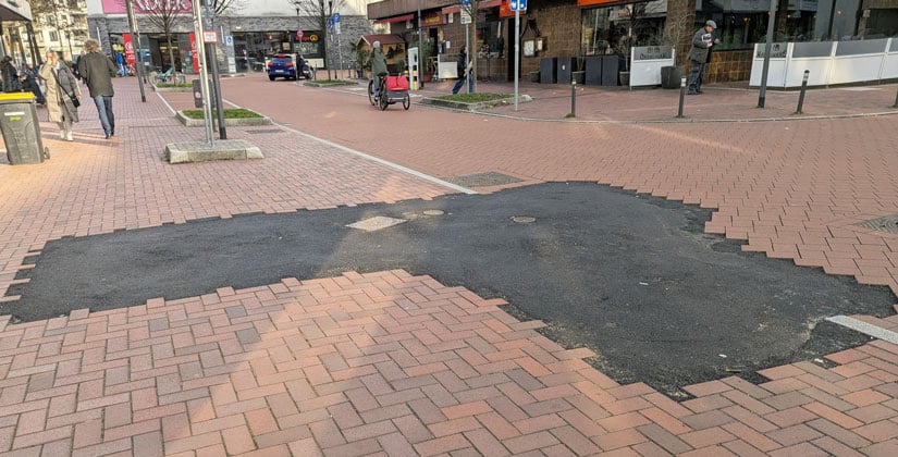 Diese Übergangslösung sollte vor allem eines leisten: Sicherheit und eine schnelle Freigabe des Bereichs. Dass der Asphalt optisch nicht zum umliegenden Pflaster passt, war den Verantwortlichen bewusst.