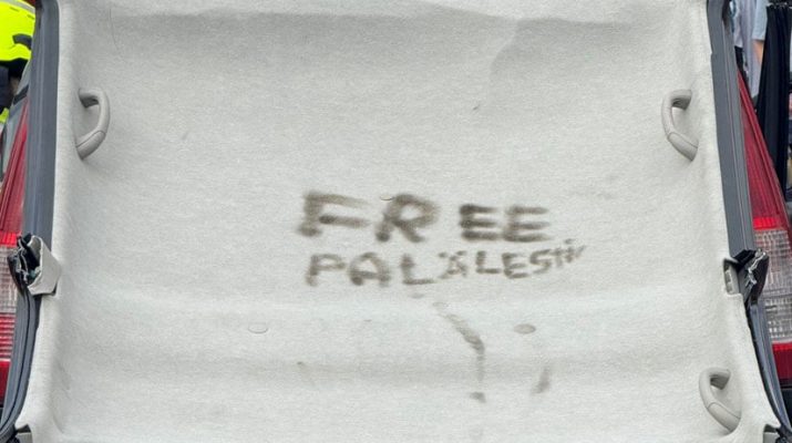 Für Verwunderung sorgte allerdings ein Detail im Rahmen dieser Übung: Nachdem nämlich das Dach des Unfallwagens aufgeklappt worden war, zeigte sich auf der Innenseite, dem sogenannten Autohimmel, eine Aufschrift „Free Palästina“.