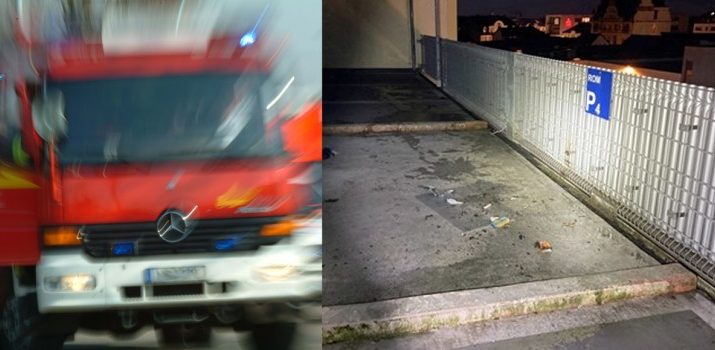 Gegen 18:15 Uhr wurden die Einsatzkräfte der Polizei sowie der Feuerwehr der Stadt Hilden wegen eines Brandausbruchs in der vierten Etage eines Parkhauses Am Kronengarten alarmiert. Ein Zeuge hatte das Feuer auf der nichtüberdachten Parkebene neben dem Fahrstuhlzugang gemeldet.