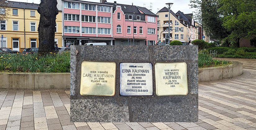 Das wissen vielleicht manche Einwohnerinnen und Einwohner von heute nicht: Gemessen an der damaligen Bevölkerungszahl war Hilden während der Zeit des Nationalsozialismus die Stadt, in der die meisten Menschen durch das NSDAP-Regime ermordet oder in den Tod gedrängt worden sind. Entsprechend erinnern auch zahlreiche „Stolpersteine“ an die Opfer der Gräueltaten. Am 4. April 2024 sind zwei weitere Gedenksteine hinzugekommen: Sie erinnern an Carl und Werner Kaufmann, die einst im Haus Hagedorn gelebt haben – damals Benrather Straße 1, heute Fritz-Gressard-Platz, am Zugang zum Stadtpark.